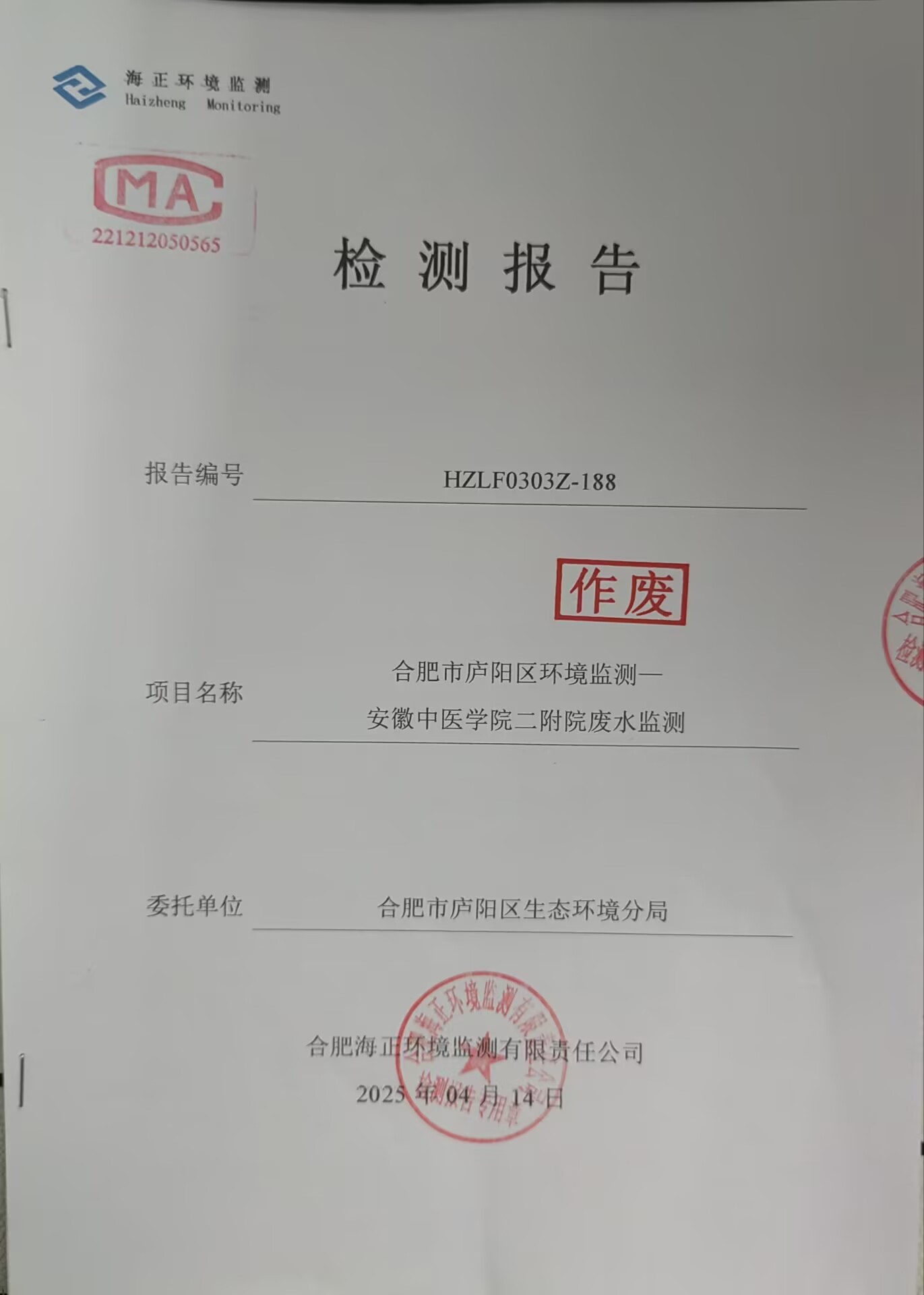 關于對委托單位合肥市廬陽區生態環境分局 ,項目編號:HZLF0303Z-188檢測報告作廢的公示